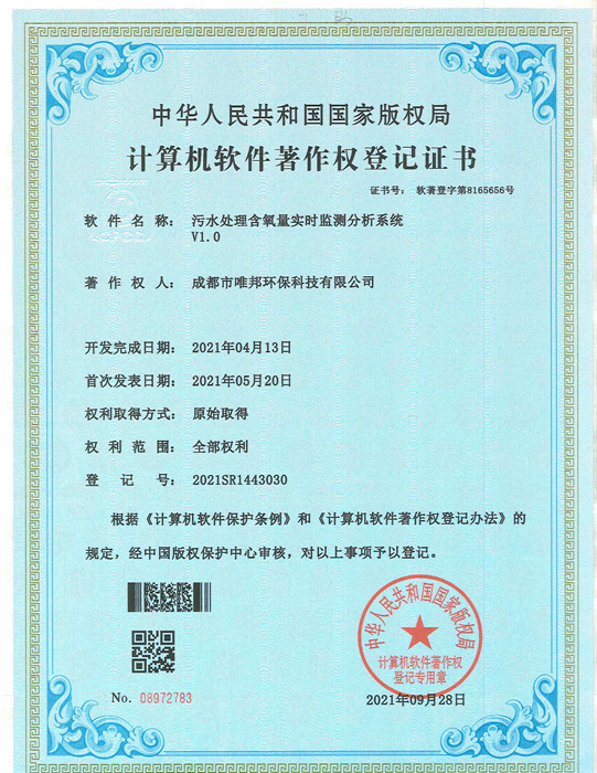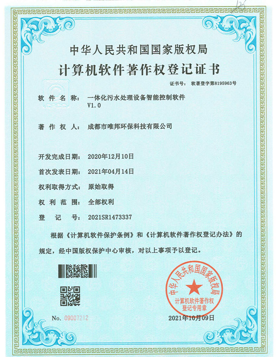 低耗能農村污水處理設備-證書